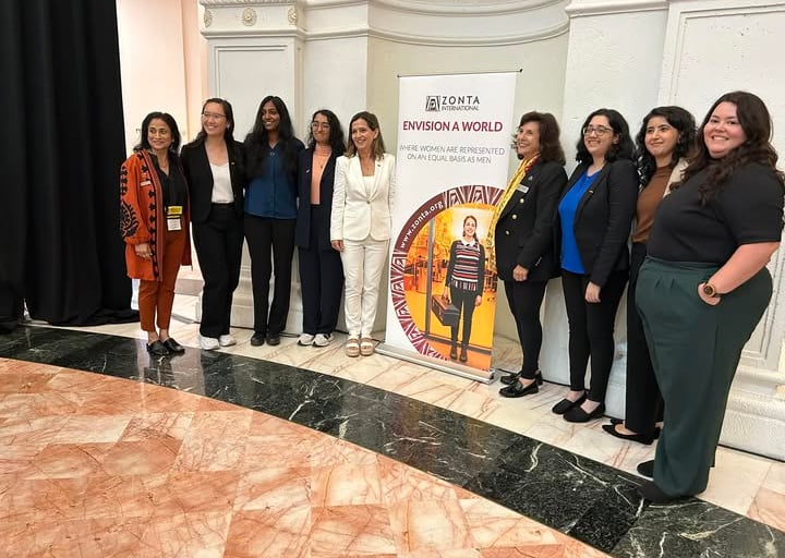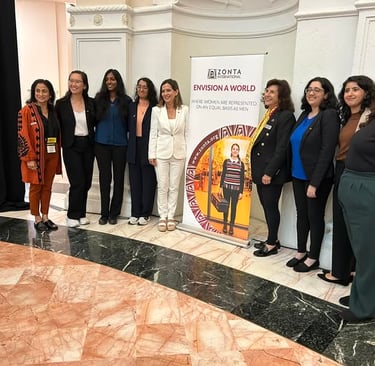 Pictured below are 6 AE Fellows who attend university in District 11 who attended the conference in October, 2025. Each showed a video about her work and was "pinned" with her AE wings.